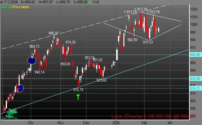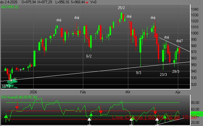 Door te bellen naar 0900-0130 [€1,20 pm] of via de WhatsApp Service kunt u via deze website de voorgestane posities en de visie van Koen op de aandelenbeurzen en de AEX-index op de voet volgen.